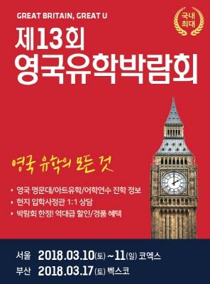 제13회 영국유학박람회는 3월 10일과 11일 서울 코엑스와 17일 부산 벡스코에서 열린다. 참가를 원하는 사람은 영국유학박람회 홈페이지에서 사전 예약하면 무료로 입장이 가능하다.