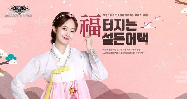 서든어택에서는 설 연휴를 맞아 28일까지 접속 시간에 따라 신규 승리하개 스킨, 30만 경험치 등을 획득할 수 있는 설 맞이 버닝 이벤트를 진행하고, 인기 배우 전소민 신규 캐릭터를 출시했다. 한복 소민, 유니크 소민으로 구성되며, 해당 캐릭터에는 새해인사, 반전 댄스 소민 등 전용 감정표현이 적용된다.