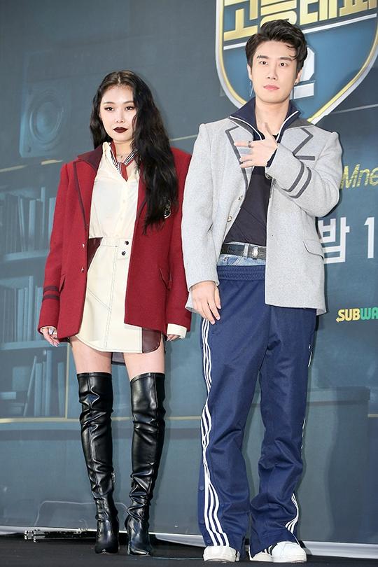 가수 치타, 산이가 23일 오후 서울 마포구 CJ E&M센터에서 열린 Mnet '고등래퍼2' 제작발표회에 참석해 포즈를 취하고 있다. '고등래퍼2'는 고등학생들만의 거침없고 진정성있는 이야기를 힙합을 통해 담아내고, 10대들의 목소리를 대변하며 건강한 힙합 문화를 전파할 고교 래퍼 서바이벌이다. 오늘(23일) 저녁 첫방송. 박찬하 기자 raypark@