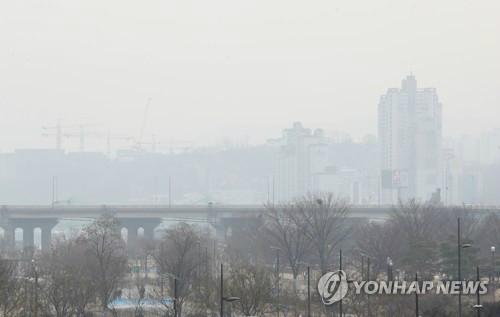 미세먼지 농도가 전국적으로 나쁨을 나타낸 24일 오전 서울 마포대교에서 바라본 동쪽 방향 건물들이 뿌옇게 보인다.(연합뉴스)24일 전국이 대체로 포근한 기온을 보이고 있지만, 미세먼지가 농도가 높게 나타나면서 주말 나들이객들에게 주의가 당부된다.