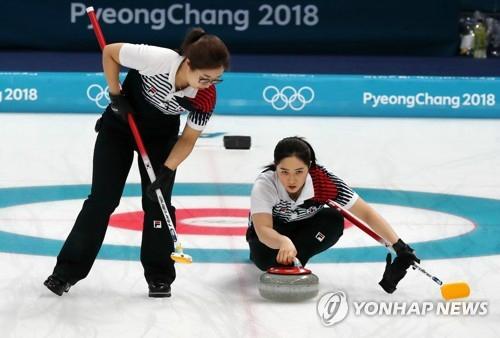 여자 컬링 결승전에서 한국 대표팀이 8엔드에서 한 점을 추가하며 스웨덴을 추격하고 있다. 사진=연합뉴스한국 여자 컬링이 8엔드에 1점을 만회했다.