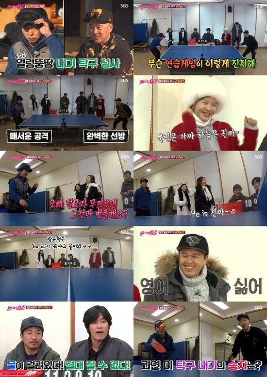 정확히 3대 3 응원팀이 나눠진 국진과 하늘의 탁구대회는 동계올림픽 못지 않은 긴장감으로 손에 땀을 쥐게 했다. 승부욕이 강한 두 사람은 매서운 공격과 완벽한 선방으로 연습 게임부터 진지한 경기를 펼쳤다. 초반 하늘의 기습 공격에 "국진은 가짜, 하늘은 진짜"라며 친구들이 응원을 하자, 강수지는 "오빠 털모자 무거우면 그것만 벗을래요?"라며 국진을 살뜰히 챙겼다.