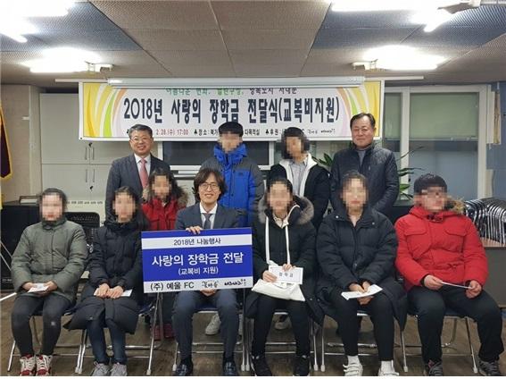 ㈜예울FC는 이날 행사에서 서울 북가좌2동 기초 수급 대상자 중 모두 10가구에게, 1가구당 총 50만원의 '사랑의 장학금'을 각각 전달했다.