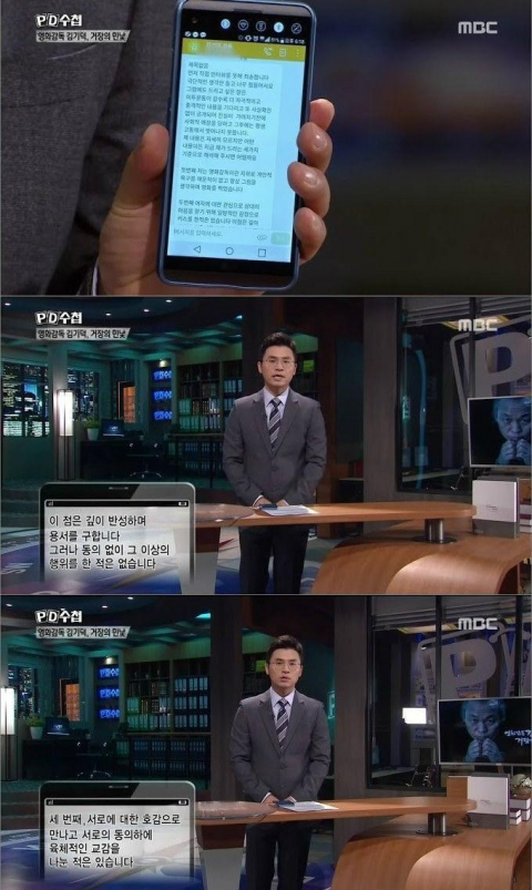 'PD수첩' 김기덕의 문자 해명 "개인적 욕구 채운 적 없어…상호 동의 했다"