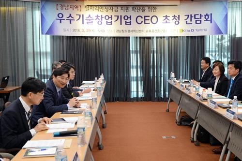 기술보증기금 김규옥 이사장이 간담회 참석자들과 의견을 나누고 있다. 기술보증기금 제공.기술보증기금(이사장 김규옥, 이하 '기보')은 29일 경남 창원시 소재 경남창조경제혁신센터에서 최저임금 인상 등에 따른 현장의 애로사항을 청취하고, 정부의 일자리 안정자금 사업 안내를 위해 김규옥 이사장 주재로 경남지역 간담회를 개최하였다.