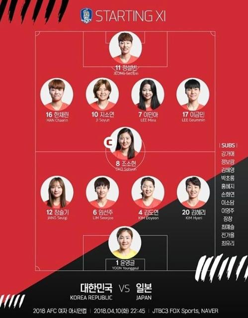 'AFC 여자 아시안컵' 한일전 라인업 공개…이민아·지소연 선발 출격