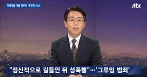 이재록 목사 성폭행 의혹 보도한 JTBC '뉴스룸'.JTBC '뉴스룸'은 만민중앙성결교회 이재록 목사의 성폭행 의혹 사건을 '그루밍 범죄'라고 분석했다.