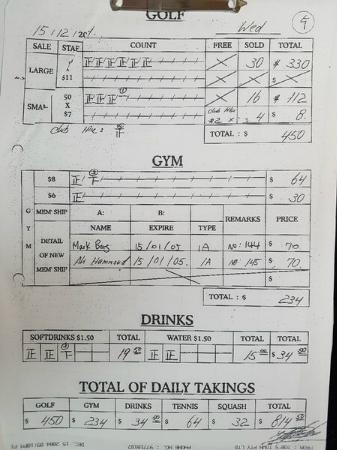 문건에는 골프장, 체육관, 신규 등록 고객 현황 등이 상세하게 기록돼 있다. 음료수와 물 판매량까지도 바를 정(正)자를 그어가며 꼼꼼하게 기록할 정도였다. 골프장에서 400~500달러, 체육관에서 200~300달러 등 하루 800달러 안팎의 금액이 적혀 있었다. 호주 달러로 매출을 표기한 것이라면 이 서류들을 통해 확인할 수 있는 금액은 한화로 약 70만 원 수준. 매출인지 수익인지 여부는 알 수 없지만 일 단위로 꾸준히 기록됐다는 점이 이채롭다. 또 흙 공사, 지하수 허가비용, 골프연습장 보수 공사 재료 견적서 등 운영에 필요한 아주 세세한 부분까지도 서류로 작성해 일일이 보고한 것으로 나와 있다.