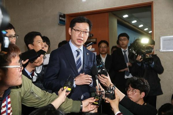 더불어민주당 김경수 의원이 19일 오후 서울 여의도 국회 정론관에서 경남도지사 출마를 선언한뒤 기자들의 질의에 답하고 잇다. 김종호 기자 kimjh@포털 댓글 여론조작 혐의를 받는 더불어민주당 당원 김 모(48, 필명 '드루킹') 씨가 민주당 김경수 의원에게서 특정 언론보도 주소(URL)를 전송받은 뒤 "처리하겠다"고 답변한 사실이 확인됐다.