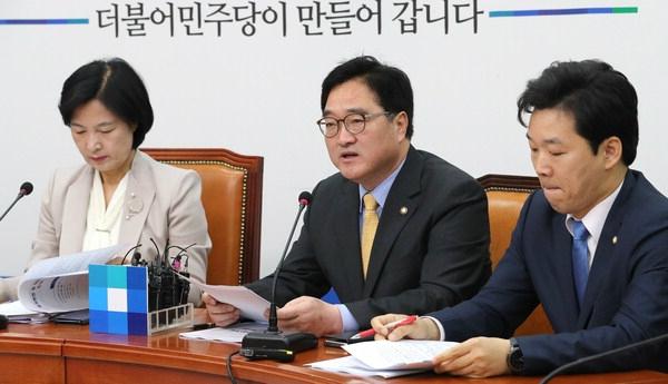 더불어민주당 우원식 원내대표(가운데)가 20일 오전 국회에서 열린 최고위원회의에서 발언하고 있다. 연합뉴스더불어민주당 우원식 원내대표는 20일 "오늘까지 국민투표법을 처리하지 못하면 국민과의 약속인 6월 지방선거와 개헌 동시투표는 물론 개헌도 사실상 수포가 될 것"이라며 야당의 협조를 촉구했다.