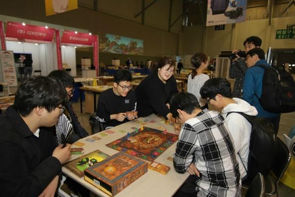 사진은 마켓플러스에서 한국사를 소재로 만든 보드게임 '호이호이 역사카드'를 즐기고 있는 방문객들의 모습이다.