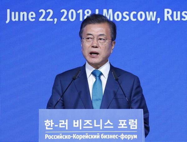 문 대통령은 이날 오전 모스크바 롯데호텔에서 열린 한·러 비즈니스 포럼 기조연설에서 "양국 수교 30주년이 되는 2020년까지 교역액 300억 달러, 인적교류 100만명 목표를 달성하는데, 한·러 FTA가 그 출발점이 될 것"이라며 이 같이 말했다.