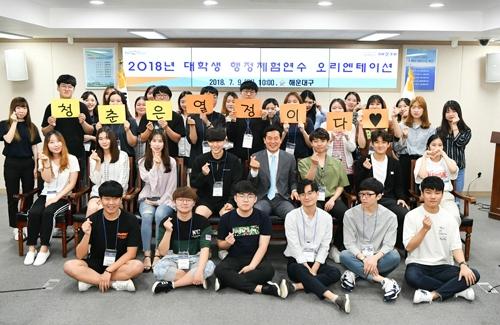 대학생들에게 행정 체험 기회를 제공하는 '행정체험 연수'는 청년들에게 해운대 현안과 비전을 소개하는 한편 구정에 대한 관심을 유도하는 프로그램이다. 이번 여름방학에는 36명이 참여한다.