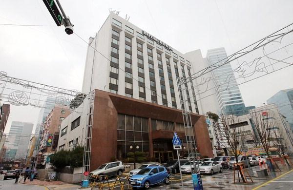 조선방직 옛터를 한 바퀴를 돌아보는 건 부산의 옛 모습을 더듬는 것과 같다. 옛 부산은행 본점이 조선방직 옛터를 원점 회귀하는 기점이자 종점이다. '조방타운'이란 표지판에서 출발한다. 여기서부터 국제호텔(사진)까지 조선방직 남쪽 담장이 있었다. KT 남부산지사 건물에서 부산시민회관 쪽으로 방향을 잡는다. 동천을 따라가는 조선방직 동쪽 경계선은 무지개다리까지다. 무지개다리 약간 못 미쳐 중앙시장으로 가는 골목이 과거 문현선 철로다. 도저히 열차가 다니지 못했을 것 같은 좁은 길이다. 그만큼 당시 철도 차량이 작았다.