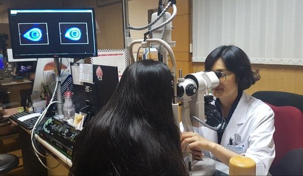 오지원(오른쪽) 이안과 원장이 환자를 검진하고 있다. 이안과 제공초등학생에게 흔히 발견되는 안과 질환인 근시의 원인은 다양하다. 유전적 요인이 많이 작용하지만, 최근에는 스마트폰 사용이 늘어나면서 근시 발병률이 상당히 높아지고 있다. 특히 성장기에는 키가 자라면서 근시까지 같이 진행된다. 따라서 자녀에게 근시 증상이 나타난다면 서둘러 근시를 교정해주는 게 바람직하다.