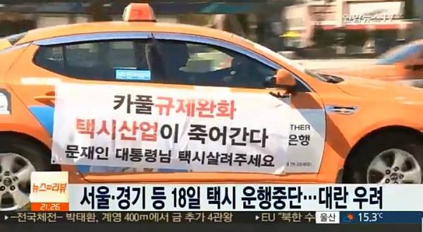 사진=연합뉴스TV카카오의 카풀 서비스 도입에 전국 택시업계가 집단으로 반발에 나섰다. 특히 서울 택시 7만여 대가 파업을 예고했다.
