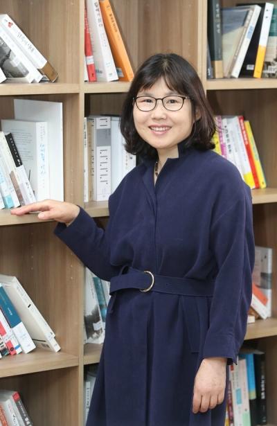 정영선 소설가는 "책의 모티브가 된 선주 씨와 수지도 기뻐할 것 같다. 특히 수지는 책을 읽고 정신을 차린 것 같다"고 웃음지었다. 김경현 기자 view@"등단 후 20여 년 간 '요산'이라는 단어를 듣지 않았다면…. 이 소설을 아마 구상하지 못했을 겁니다."