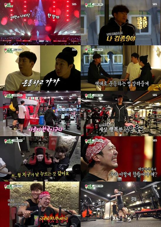 종국은 헬스장의 새로운 기구들을 보자 "이곳이 천국이구나"를 외치며 쇼핑 온 사람처럼 행복해 했다. 반면, 하하와 양세찬은 종국의 코치로 운동 기구를 사용할 때마다 고통의 지옥을 체험했다. 특히, 하하는 어깨 운동을 하던 중 "형…지구가 날 누르는 것 같아요"라며 괴로워하고 "대만까지 와서 우리 이렇게 힘들어야 해?"라며 불만을 쏟아내 큰 웃음을 안겼다.
