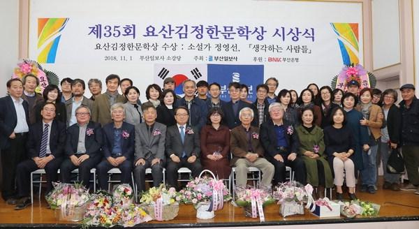 제35회 요산김정한문학상 시상식이 문인과 시민 100여 명이 모인 가운데 1일 오후 6시 부산일보사 10층 소강당에서 성황리에 개최됐다.