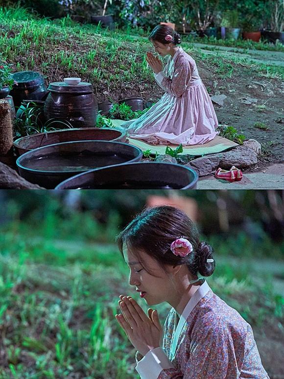 그런 그녀가 어두운 밤 중 곱디고운 자태를 뽐내며 소원을 빌고 있다. 환한 달빛과 장독대가 놓인 산 속, 꽃버선까지 가지런히 벗어둔 채 무릎을 꿇고 있는 선옥남은 한 폭의 그림 같은 신비로운 분위기를 자아내 시선을 사로잡는다. 두 손을 모으고 눈까지 꼭 감은 채 애타는 표정을 짓고 있는 그녀의 모습은 너무나도 간절한 기운이 느껴져 보는 이들의 마음까지 움직이게 만든다.