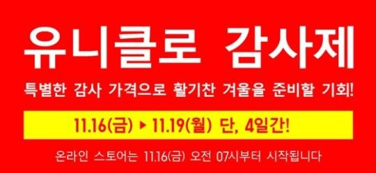 유니클로 감사제는 15일 오전 주요 포털사이트 실시간 검색어 상위권에 오르며 주목받고 있다. 유니클로는 오는 16일부터 19일까지 나흘 간 겨울 상품들을 할인된 가격에 판매하는 할인 행사를 열기 때문이다.