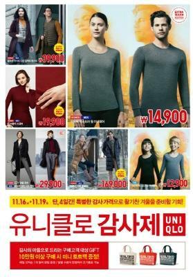 유니클로가 16일부터 19일까지 4일 동안 ‘유니클로 감사제’를 여는 가운데 할인 품목에 대한 네티즌의 관심이 높아지고 있다.