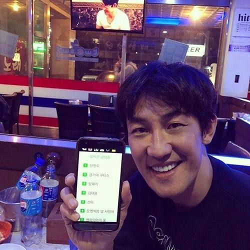 그는 이와 함께 실시간 검색어 1위에 자신의 이름이 적힌 화면이 뜬 휴대폰을 들고 인증샷을 찍어 게재했다. 사진 속 한정수는 함박 웃음을 짓고 있다.