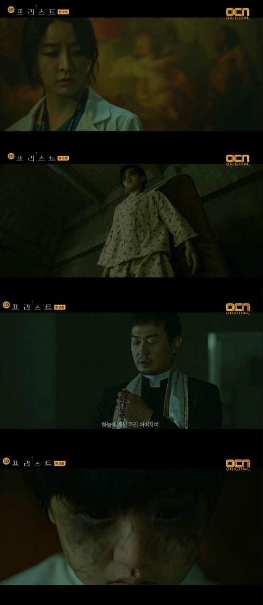 25일 방송된 OCN 토일드라마 '프리스트' 2회에서는 문기선(박용우)이 김우주(박민수) 속에 있는 악마를 쫓기 위한 퇴마의식을 시작했다.