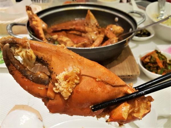일단 자리를 잡은 뒤 칠리크랩과 시리얼 프론을 주문했다. 칠리크랩은 게를 양념한 요리다. 생선조림에 생선 대신 게를 넣은 모양이다. 칠리크랩은 양념 맛이 포인트다. 게에 싱가포르산 고추, 검은 후추와 하얀 후추, 소금, 달걀을 넣어 튀긴다. 달걀 흰자를 넣어 찐 뒤 태국식 커리를 넣고, 마늘과 양파를 더해 볶으면 된다.
