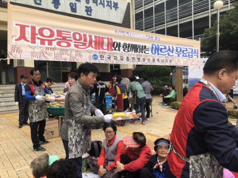 한국자유총연맹부산시지부(회장 양재생)는 최근 부산자유회관에서 동구지회 회원, 통도사포교원 등 봉사자 80여 명이 참여한 가운데 ‘어르신 무료급식 지원 봉사활동’ 을 펼쳤다.