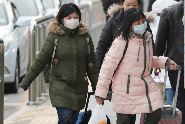 전국이 올 최악의 대기질을 보인 14일 오후 부산역에서 시민들이 마스크를 쓰고 걷고 있다. 15일 부산지역은 미세먼지 농도가 일 평균 나쁨, 초미세먼지는 매우 나쁨 단계를 보이겠다고 기상청은 예보했다. 강선배 기자 ksun@