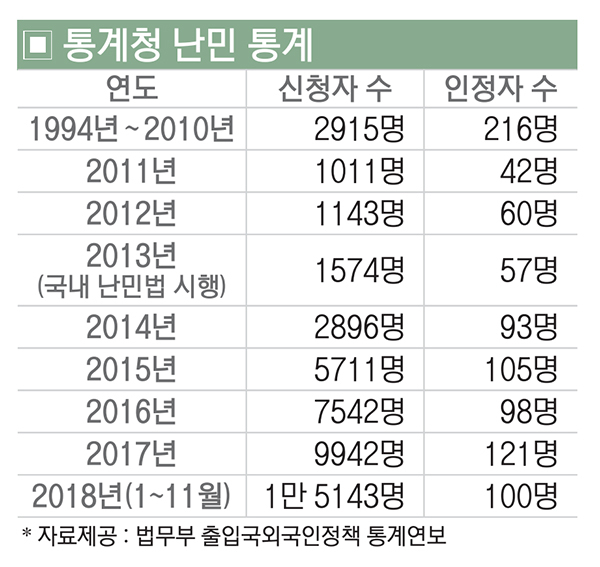 지난해 6월부터 진행된 청와대 청원페이지의 ‘난민 유입 반대’ 청원에 한 달 만에 70만 429명의 국민이 찬성의 뜻을 밝혔다. 한국사회여론연구소는 지난해 8월 19세 이상 성인 남녀 1010명을 대상으로 제주도의 예멘 난민과 관련해 조사를 실시했다. 그 결과, 난민에 대해 전반적으로 부정적인 입장을 표한 사람은 87.1%(880명)로 긍정적인 입장에 비해 압도적으로 높은 수치를 보였다.
