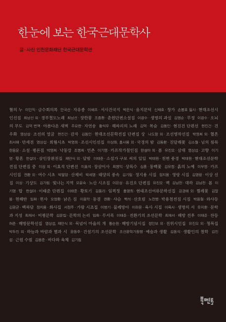 <한눈에 보는 한국근대문학사>는 한국 근대문학사를 대표하는 단행본 100권을 선정해 발행 당시 실물 책의 모습을 보여준다. 표지와 차례, 판권면 등을 실어 당시 책의 모습을 독자들이 그대로 볼 수 있도록 했고, 해당 책의 해제를 붙여 놓아 작품에 대한 이해를 높였다. 1908년 출간된 이인직의 소설 ‘혈의 누’부터 1948년에 출간된 윤동주의 유고시집 <하늘과 바람과 별과 시>까지 한국 근대문학사를 한 눈에 볼 수 있다.