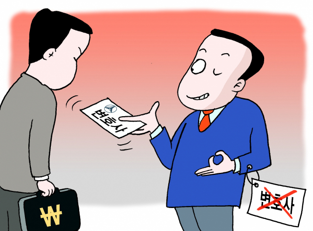 부산지검 특수부(부장검사 박승대)는 최근 변호사법 위반 혐의로 최 씨를 불구속기소했다고 12일 밝혔다. 검찰에 따르면 최 씨는 지난해 3월 부산의 한 호텔 매수와 관련한 법인 양도양수 용역계약을 알선하면서 변호사 직함을 표시한 명함을 무단 제작해 사용한 혐의를 받고 있다. 최 씨는 또 지난해 5월께 지인의 형사사건 소송서류를 대신 작성하고 법률 조언을 해 준 대가로 1000만 원을 받는가 하면, 비슷한 시기 ‘법무법인 대표 변호사’ 직함이 찍힌 명함을 수차례 사용한 혐의도 받고 있다.