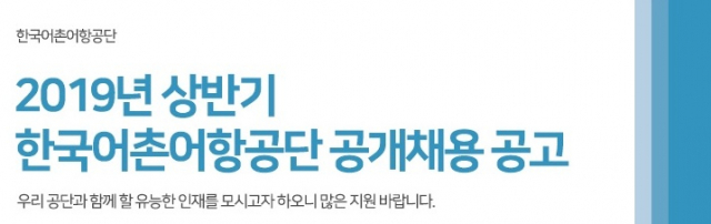한국어촌어항공단(이사장 최명용)이 2019년도 상반기 공개채용을 실시한다.