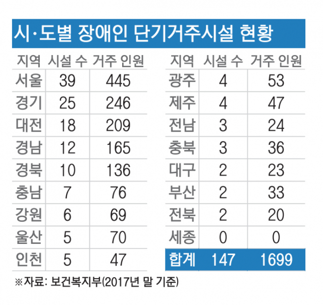 특히 부산의 경우 2018년 말 기준으로 단기거주시설이 2곳으로 전국 꼴찌 수준이다. 서울(39곳), 경기(25곳), 대전(18곳), 경남(12곳) 등 타 시·도와 비교해 턱없이 부족하다.