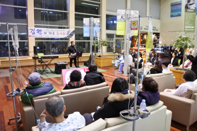 은성의료재단 좋은강안병원(병원장 서우영, 이사장 구정회)이 지난 21일 환자 및 보호자, 내원객들을 대상으로 ‘가수 김원의 작은 음악회’를 진행했다.