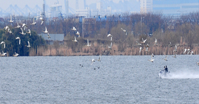 세계 최대 철새 도래 지역인 부산 낙동강 하구 일대가 수상오토바이로 몸살을 앓고 있다. 철새를 향해 수상오토바이가 폭주하는 일이 빈번하지만, 관련 기관은 책임 떠넘기기에 급급한 실정이다. 최근 멸종위기종의 개체수도 급감하고 있어 대책이 시급하다는 지적이 나온다.