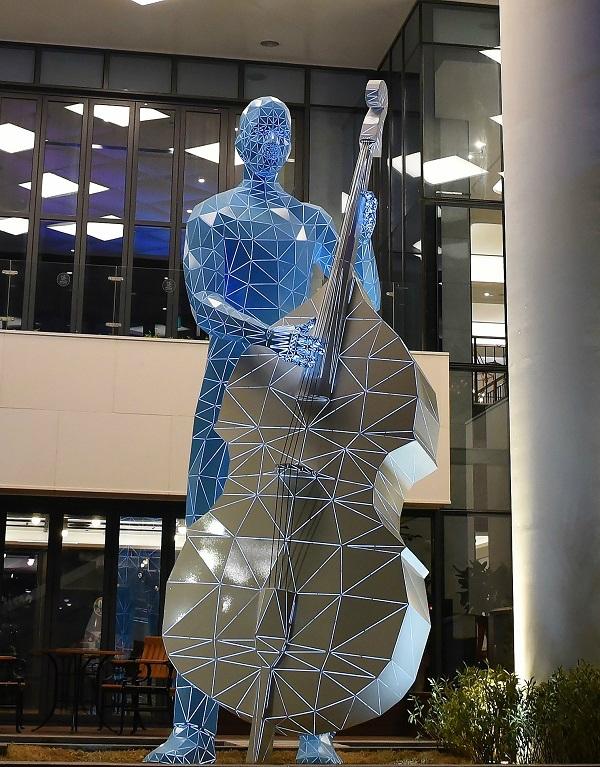 호텔 정문에 서있는 'La Valse(왈츠를 연주하는 사람)'는 유영호 작가의 작품. 최근 글로벌 프로젝트로 진행하는 그리팅맨과 어벤져스, 드라마 남자친구 등에 작품이 등장하며 더욱 친숙하고 화제가 되고 있는 유명 작가다.