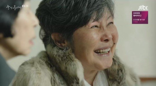 18일 방송된 종합편성채널 JTBC 월화드라마 '눈이 부시게'에는 김혜자(김혜자)가 친구 윤상은(윤복희)과 이현주(손숙)와 병실에서 재회한 모습이 공개됐다.
