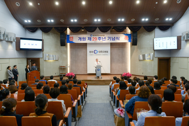 동아대병원(원장 허재택)은 지난 26일 200명의 교직원과 내빈 등이 참석한 가운데 29주년 개원 기념식(사진)을 열었다.