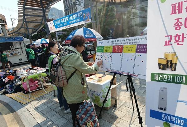 생활폐기물을 활용한 화단 전시, 헝겊과 요구르트 병 등을 재활용한 무료 공예체험, 폐건전지ㆍ종이팩 교환행사, 1회용품ㆍ음식물쓰레기 줄이기 캠페인, 올바른 분리배출 방법 홍보도 함께 진행됐다.