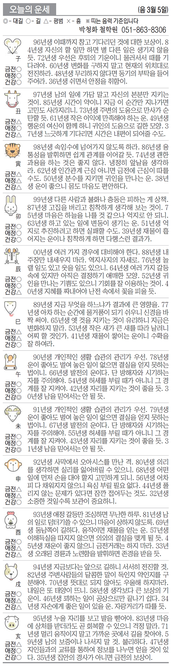[부산일보 오늘의 운세] 4월 9일 화요일 (음 3월 5일)