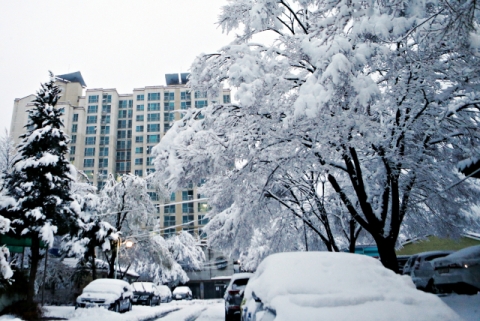 폭설이 내린 10일 강원 태백시 문곡동 아파트단지에 눈꽃이 활짝 폈다. (사진=연합뉴스)