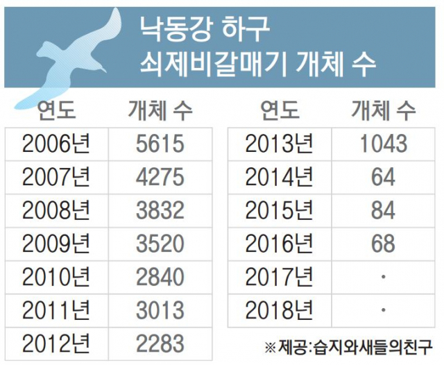 환경단체 습지와새들의친구 자료에 따르면 동아시아 최대 쇠제비갈매기 번식지로 꼽히던 낙동강 하구에서 2014년부터 번식 개체 수 확인이 힘들 만큼 적은 쇠제비갈매기가 관찰되고 있다. 또 낙동강 하구는 한국을 찾는 고니의 70% 이상이 도래하는 ‘한국 최대 고니류 월동지’라는 수식어도 잃게 됐다. 2005년 평균 2500여마리의 고니가 찾아왔지만, 2017년에 이어 지난해에는 100마리도 채 관찰되지 않고 있다. 습지와새들의친구 박중록 운영위원장은 “철새 개체 수 감소는 곧 낙동강의 생태계 건강 지수 감소나 다름없다”고 말했다.