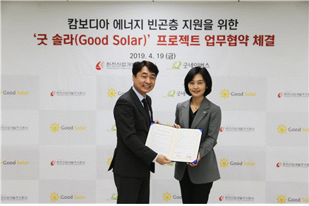 한전산업은 서울 중구 본사에서 굿네이버스와 캄보디아 에너지 빈곤층 후원을 위한 '굿 솔라'(Good Solar) 프로젝트' 2차 후원 협약을 맺었다고 22일 밝혔다.