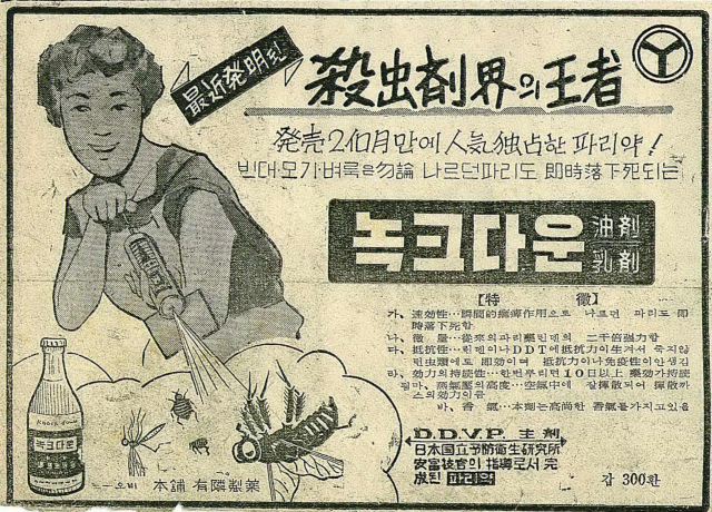 뿌리는 살충제만큼이나 다양한 기능의 파리약이 시장에 쏟아졌다. 1965년 4월 15일 자 부산일보 7면에 광고를 실은 ‘파리탄(彈)’은 “파리가 좋아하는 특수유인제를 배합해 모여든 파리가 파리탄을 빨아먹고 즉사한다”며 “파리가 한자리에 모여 죽어 음식물에 죽은 파리가 들어가지 않는다”는 위생적인 측면도 부각했다. 1961년 ‘몬키’ 살충제는 손으로 누르는 지압식을 강조했고, 1966년 ‘ABC파리약’은 살충과 향기를 겸한 특수제품이라고 광고했다. 1969년 ‘노페스트’는 뿌릴 필요 없이 매달아 두면 60일 동안 파리 걱정이 없는 편리함을 내세웠다.