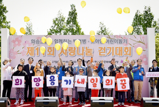 화승그룹이 후원하는 ‘제11회 백혈병소아암 어린이 돕기 사랑 나눔 걷기대회’(사진)가 지난달 27일 부산 초읍 어린이대공원에서 열렸다.