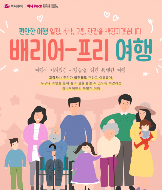 ㈜하나투어가 '배리어 프리(Barrier-free)' 여행상품(사진)을 출시했다고 14일 밝혔다. 고령자나 거동이 불편한 이들도 손쉽게 해외여행을 경험할 수 있도록 한다는 취지다.