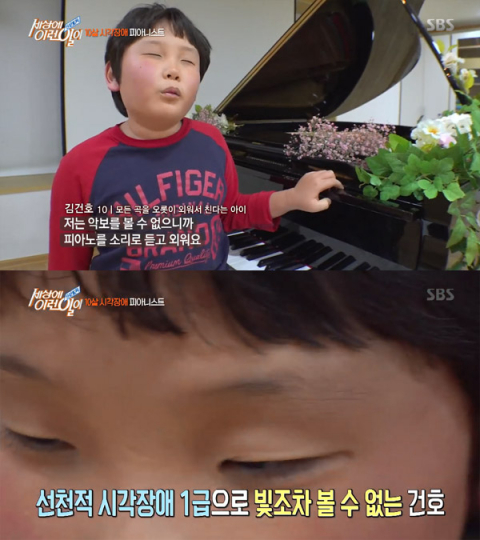 레베르 선천성 흑암시증, 시각장애 피아니스트 김건호 군 사연…순간포착 세상에 이런일이